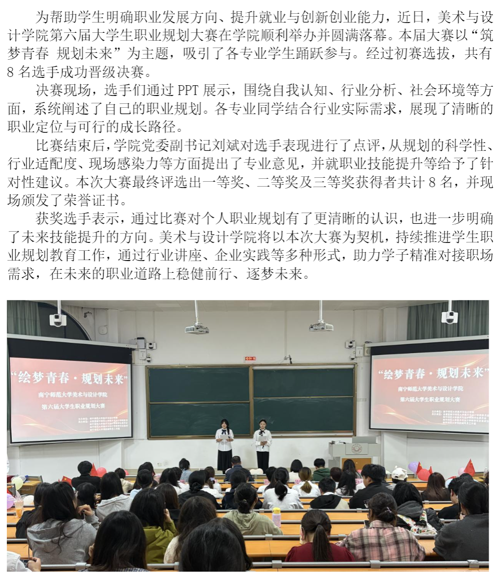 “筑梦青春 规划未来”美术与设计学院第六届大学生职业规划大赛圆满落幕
