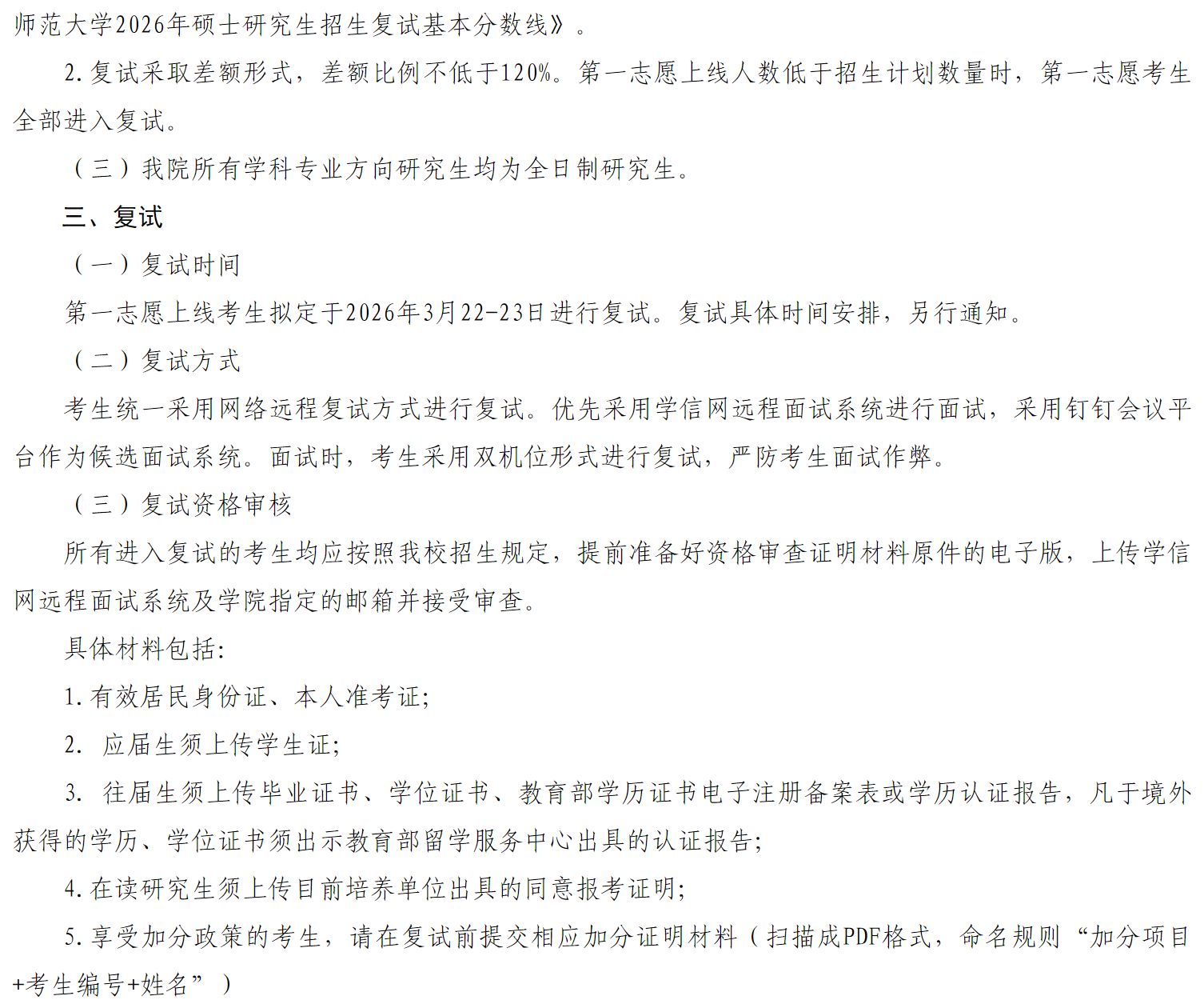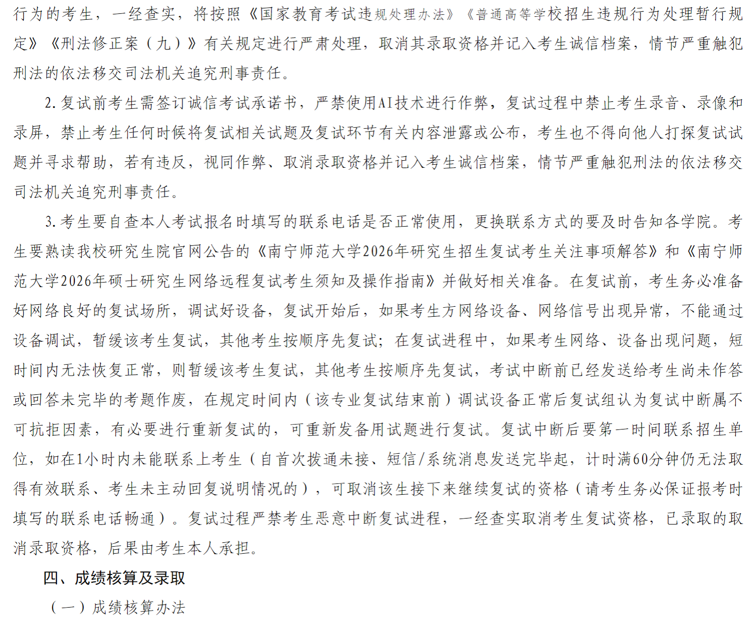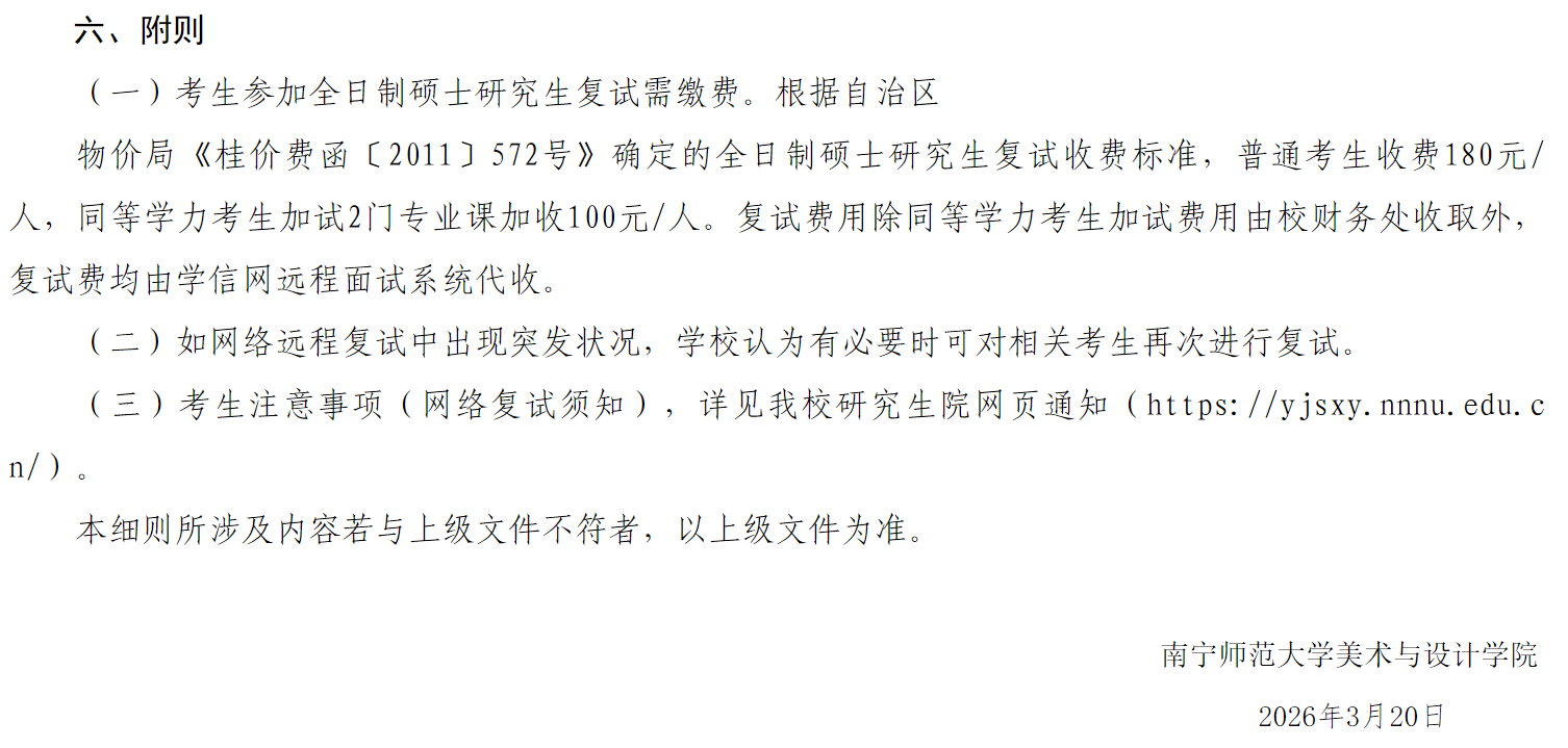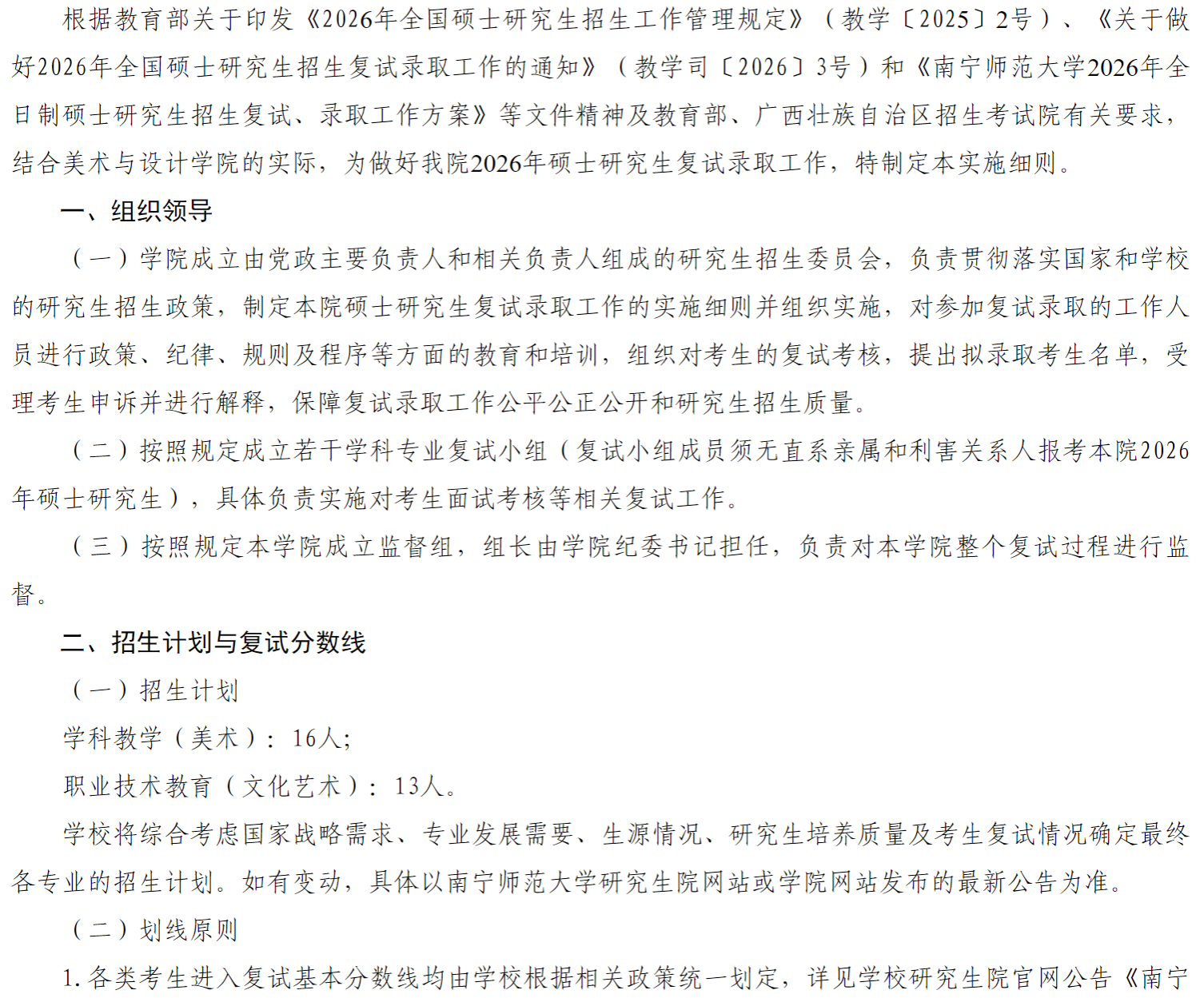 南宁师范大学美术与设计学院 2026年全日制硕士研究生招生复试录取工作 实施细则
