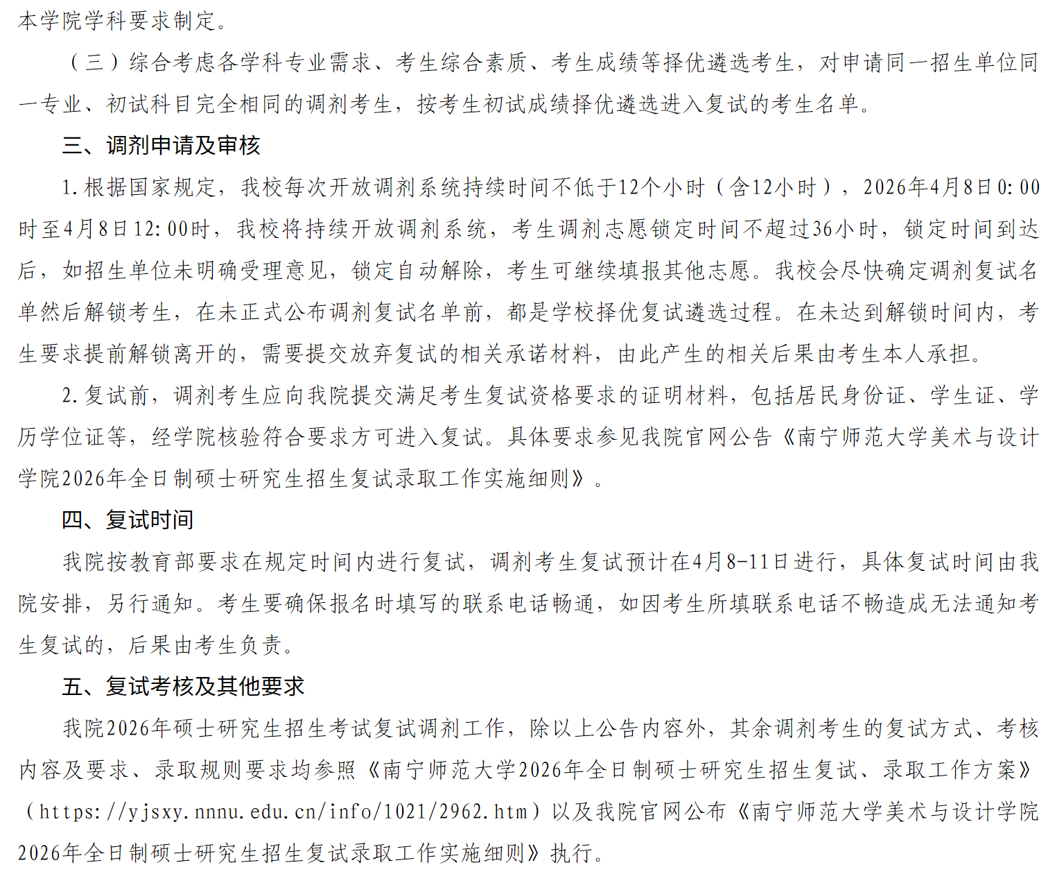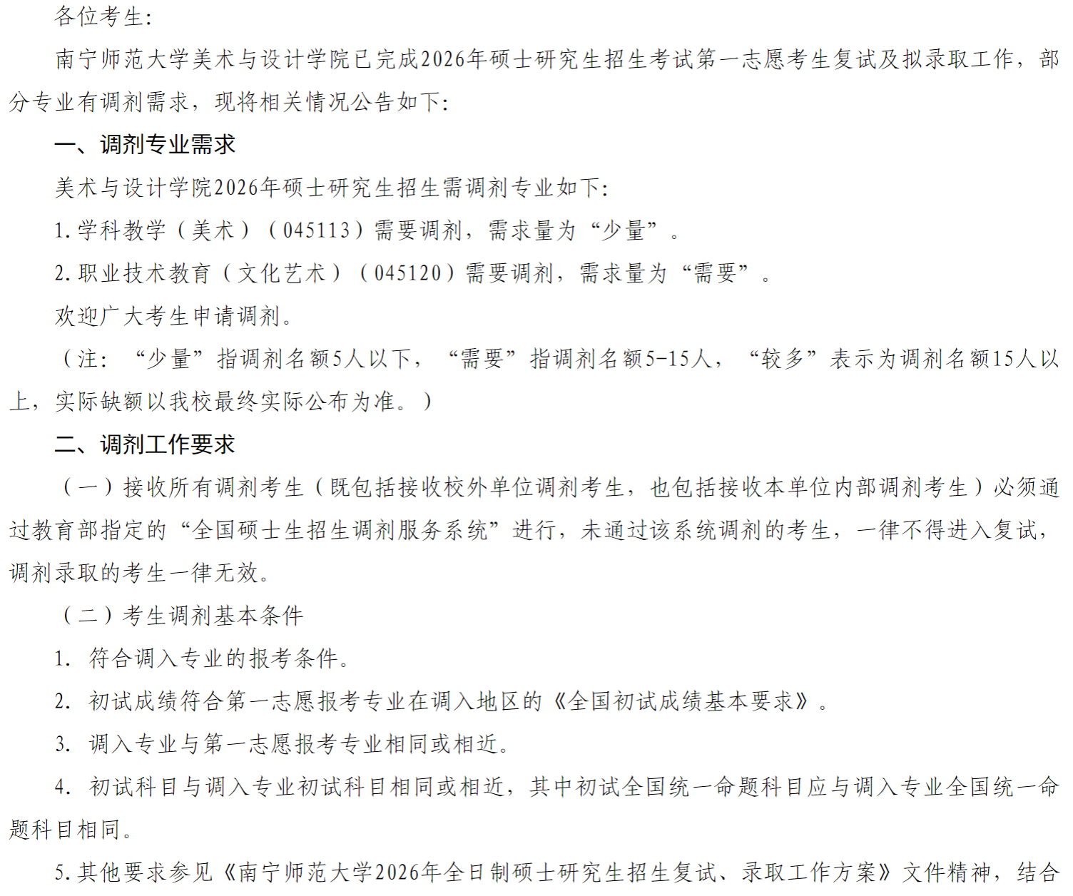 南宁师范大学美术与设计学院2026年全国硕士研究生招生调剂复试公告